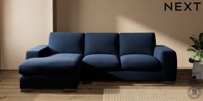 7.2.10 Houghton Deep Sit Medium Sofa Chaise - Left Hand Fine Chenille Easy Clean Dark Navy Blue Large Square Angle - Gunmetal | Made Click here to use our website with more accessibility support, for example screen readers