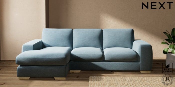 7.2.10 Houghton Deep Sit Medium Sofa Chaise - Left Hand Fine Chenille Easy Clean Mid Blue Large Square Angle - Light | Made Click here to use our website with more accessibility support, for example screen readers