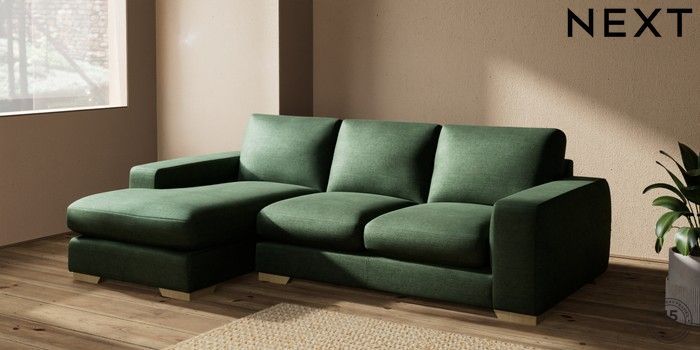 7.2.10 Houghton Deep Sit Medium Sofa Chaise - Left Hand Luxe Chenille Dark Green Large Square Angle - Light | Made Click here to use our website with more accessibility support, for example screen readers