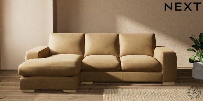7.2.10 Houghton Deep Sit Medium Sofa Chaise - Left Hand Luxe Chenille Honey Yellow Large Square Angle - Light | Made Click here to use our website with more accessibility support, for example screen readers