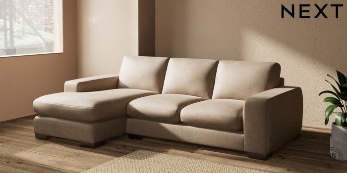 7.2.10 Houghton Deep Sit Medium Sofa Chaise - Left Hand Luxe Chenille Mid Camel Beige Large Square Angle - Gunmetal | Made Click here to use our website with more accessibility support, for example screen readers