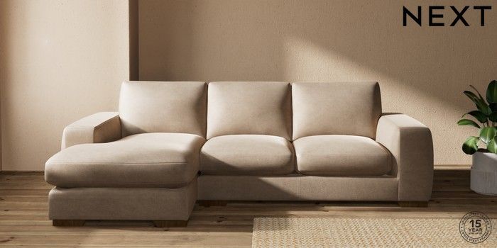 7.2.10 Houghton Deep Sit Medium Sofa Chaise - Left Hand Luxe Chenille Mid Camel Beige Large Square Angle - Mid | Made Click here to use our website with more accessibility support, for example screen readers