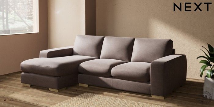 7.2.10 Houghton Deep Sit Medium Sofa Chaise - Left Hand Luxe Chenille Mink Brown Large Square Angle - Light | Made Click here to use our website with more accessibility support, for example screen readers