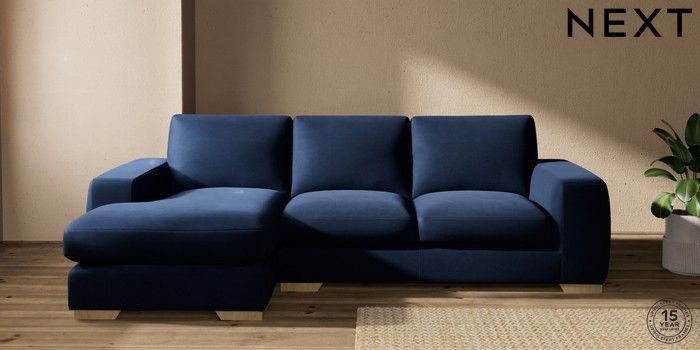 7.2.10 Houghton Deep Sit Medium Sofa Chaise - Left Hand Luxe Chenille Navy Blue Large Square Angle - Light | Made Click here to use our website with more accessibility support, for example screen readers