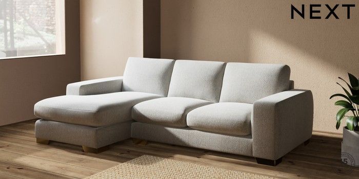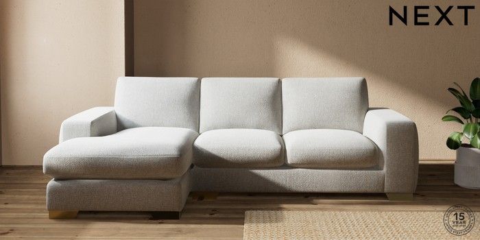 7.2.10 Houghton Deep Sit Medium Sofa Chaise - Left Hand Multi Weave Light Blue Large Square Angle - Brushed Brass | Made Click here to use our website with more accessibility support, for example screen readers