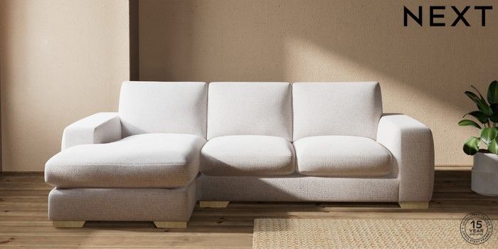 7.2.10 Houghton Deep Sit Medium Sofa Chaise - Left Hand Multi Weave Oyster Large Square Angle - Light | Made Click here to use our website with more accessibility support, for example screen readers