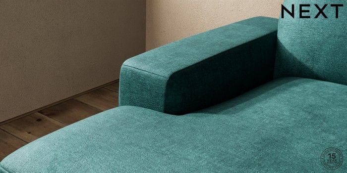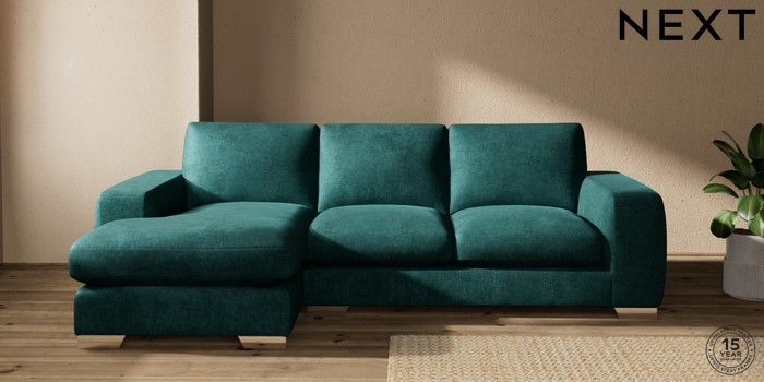 7.2.10 Houghton Deep Sit Medium Sofa Chaise - Left Hand Plush Chenille Dark Teal Green Large Square Angle - Chrome Metal | Made Click here to use our website with more accessibility support, for example screen readers