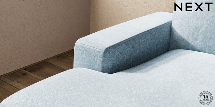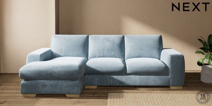 7.2.10 Houghton Deep Sit Medium Sofa Chaise - Left Hand Plush Chenille Light Blue Large Square Angle - Light | Made Click here to use our website with more accessibility support, for example screen readers