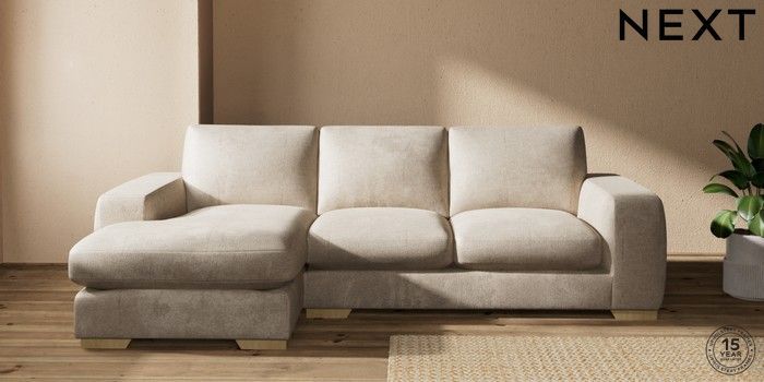 7.2.10 Houghton Deep Sit Medium Sofa Chaise - Left Hand Plush Chenille Light Natural Large Square Angle - Light | Made Click here to use our website with more accessibility support, for example screen readers