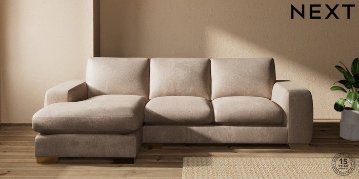 7.2.10 Houghton Deep Sit Medium Sofa Chaise - Left Hand Plush Chenille Mid Natural Large Square Angle - Brushed Brass | Made Click here to use our website with more accessibility support, for example screen readers