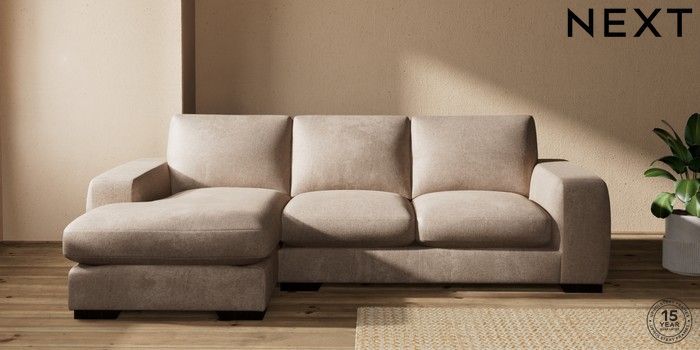 7.2.10 Houghton Deep Sit Medium Sofa Chaise - Left Hand Plush Chenille Mid Natural Large Square Angle - Dark | Made Click here to use our website with more accessibility support, for example screen readers