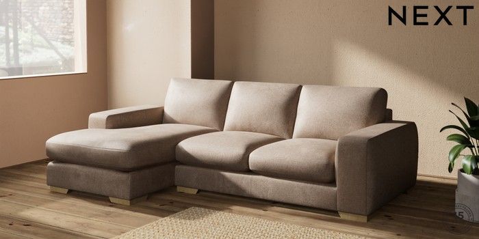 7.2.10 Houghton Deep Sit Medium Sofa Chaise - Left Hand Plush Chenille Mid Natural Large Square Angle - Light | Made Click here to use our website with more accessibility support, for example screen readers