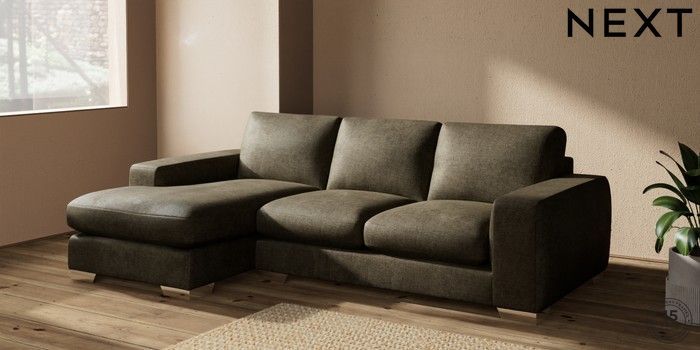 7.2.10 Houghton Deep Sit Medium Sofa Chaise - Left Hand Plush Chenille Moss Green Large Square Angle - Chrome Metal | Made Click here to use our website with more accessibility support, for example screen readers
