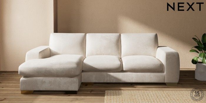 7.2.10 Houghton Deep Sit Medium Sofa Chaise - Left Hand Plush Chenille Oyster Large Square Angle - Brushed Brass | Made Click here to use our website with more accessibility support, for example screen readers