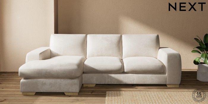 7.2.10 Houghton Deep Sit Medium Sofa Chaise - Left Hand Plush Chenille Oyster Large Square Angle - Light | Made Click here to use our website with more accessibility support, for example screen readers