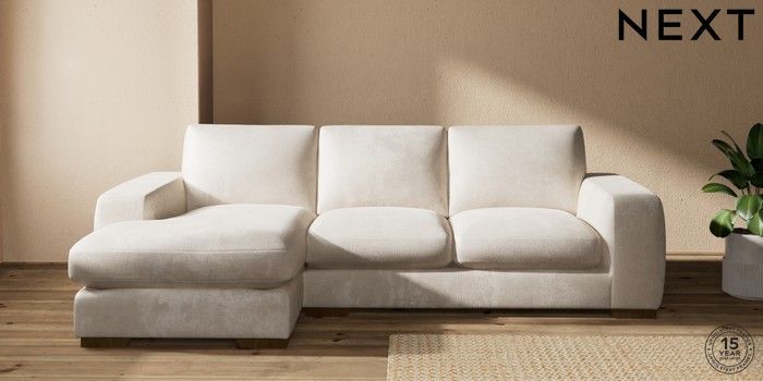 7.2.10 Houghton Deep Sit Medium Sofa Chaise - Left Hand Plush Chenille Oyster Large Square Angle - Mid | Made Click here to use our website with more accessibility support, for example screen readers