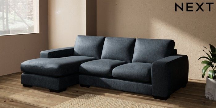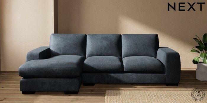7.2.10 Houghton Deep Sit Medium Sofa Chaise - Left Hand Plush Chenille Slate Blue Large Square Angle - Dark | Made Click here to use our website with more accessibility support, for example screen readers