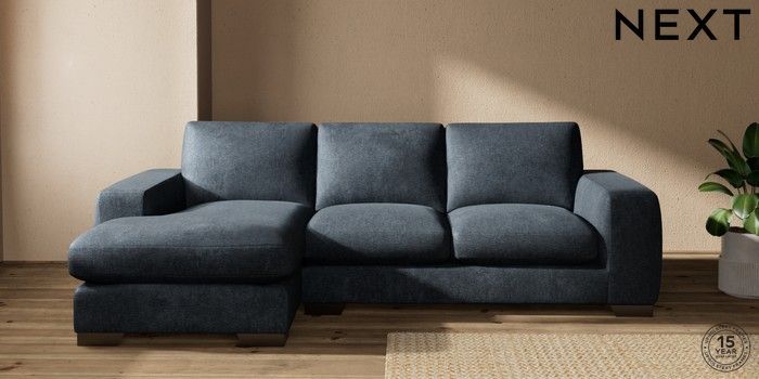 7.2.10 Houghton Deep Sit Medium Sofa Chaise - Left Hand Plush Chenille Slate Blue Large Square Angle - Gunmetal | Made Click here to use our website with more accessibility support, for example screen readers