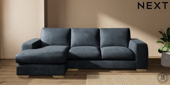 7.2.10 Houghton Deep Sit Medium Sofa Chaise - Left Hand Plush Chenille Slate Blue Large Square Angle - Light | Made Click here to use our website with more accessibility support, for example screen readers