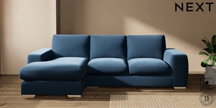 7.2.10 Houghton Deep Sit Medium Sofa Chaise - Left Hand Plush Velvet Easy Clean Airforce Blue Large Square Angle - Chrome Metal | Made Click here to use our website with more accessibility support, for example screen readers