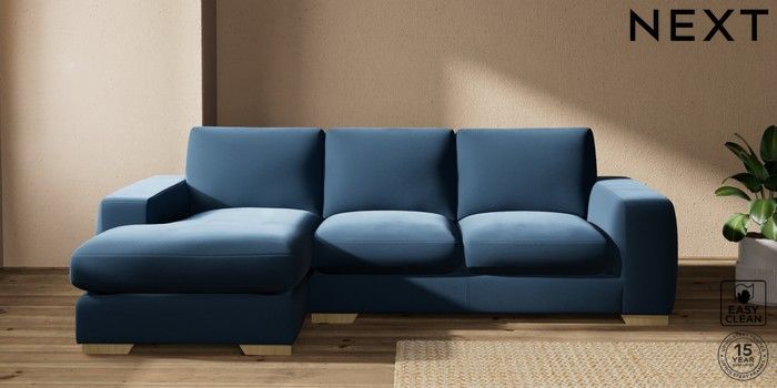 7.2.10 Houghton Deep Sit Medium Sofa Chaise - Left Hand Plush Velvet Easy Clean Airforce Blue Large Square Angle - Light | Made Click here to use our website with more accessibility support, for example screen readers