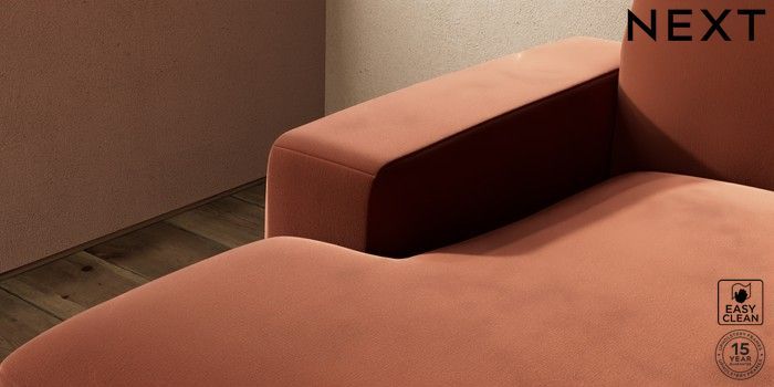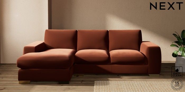 7.2.10 Houghton Deep Sit Medium Sofa Chaise - Left Hand Plush Velvet Easy Clean Ginger Orange Large Square Angle - Brushed Brass | Made Click here to use our website with more accessibility support, for example screen readers