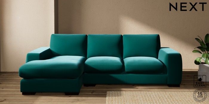7.2.10 Houghton Deep Sit Medium Sofa Chaise - Left Hand Plush Velvet Easy Clean Juniper Green Large Square Angle - Dark | Made Click here to use our website with more accessibility support, for example screen readers