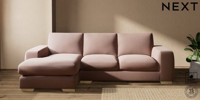 7.2.10 Houghton Deep Sit Medium Sofa Chaise - Left Hand Plush Velvet Easy Clean Mid Natural Large Square Angle - Light | Made Click here to use our website with more accessibility support, for example screen readers