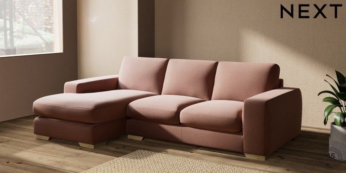 7.2.10 Houghton Deep Sit Medium Sofa Chaise - Left Hand Relaxed Linen Look Light Rust Brown Large Square Angle - Light | Made Click here to use our website with more accessibility support, for example screen readers