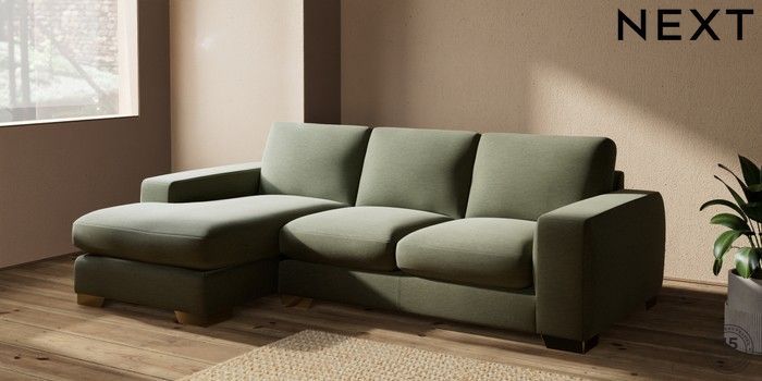 7.2.10 Houghton Deep Sit Medium Sofa Chaise - Left Hand Ripple Chenille Mid Moss Green Large Square Angle - Brushed Brass | Made Click here to use our website with more accessibility support, for example screen readers