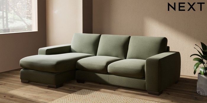 7.2.10 Houghton Deep Sit Medium Sofa Chaise - Left Hand Ripple Chenille Mid Moss Green Large Square Angle - Gunmetal | Made Click here to use our website with more accessibility support, for example screen readers
