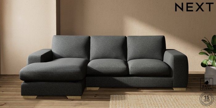 7.2.10 Houghton Deep Sit Medium Sofa Chaise - Left Hand Tweedy Blend Easy Clean Charcoal Grey Large Square Angle - Light | Made Click here to use our website with more accessibility support, for example screen readers
