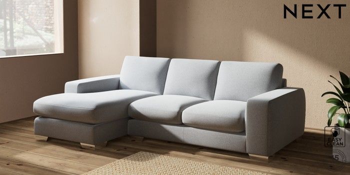 7.2.10 Houghton Deep Sit Medium Sofa Chaise - Left Hand Tweedy Blend Easy Clean Light Silver Grey Large Square Angle - Chrome Metal | Made Click here to use our website with more accessibility support, for example screen readers