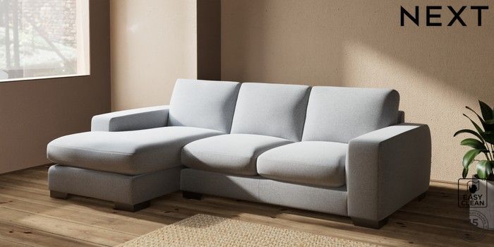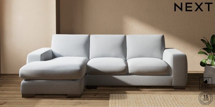 7.2.10 Houghton Deep Sit Medium Sofa Chaise - Left Hand Tweedy Blend Easy Clean Light Silver Grey Large Square Angle - Gunmetal | Made Click here to use our website with more accessibility support, for example screen readers