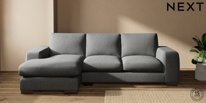 7.2.10 Houghton Deep Sit Medium Sofa Chaise - Left Hand Tweedy Chenille Dark Grey Large Square Angle - Gunmetal | Made Click here to use our website with more accessibility support, for example screen readers