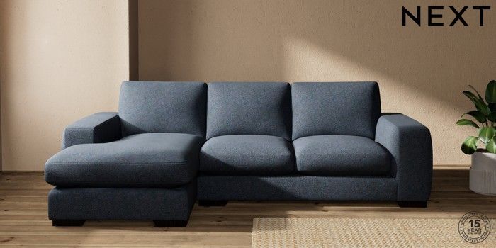 7.2.10 Houghton Deep Sit Medium Sofa Chaise - Left Hand Tweedy Chenille Navy Blue Large Square Angle - Dark | Made Click here to use our website with more accessibility support, for example screen readers