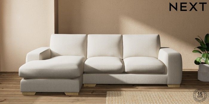 7.2.10 Houghton Deep Sit Medium Sofa Chaise - Left Hand Tweedy Chenille Oyster Large Square Angle - Light | Made Click here to use our website with more accessibility support, for example screen readers