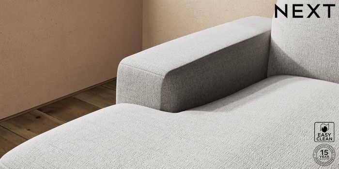 7.2.10 Houghton Deep Sit Medium Sofa Chaise - Left Hand Woven Chenille Easy Clean Light Grey Large Square Angle - Brushed Brass | Made Click here to use our website with more accessibility support, for example screen readers