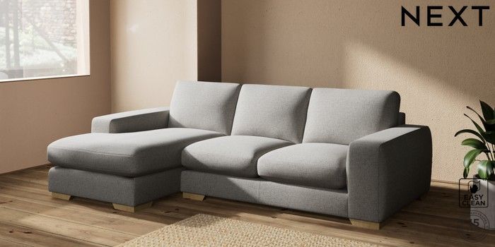 7.2.10 Houghton Deep Sit Medium Sofa Chaise - Left Hand Woven Chenille Easy Clean Light Grey Large Square Angle - Light | Made Click here to use our website with more accessibility support, for example screen readers