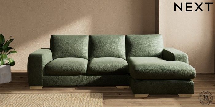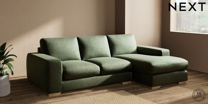 7.2.10 Houghton Deep Sit Medium Sofa Chaise - Right Hand Boucle Chenille Dark Moss Green Large Square Angle - Light | Made Click here to use our website with more accessibility support, for example screen readers