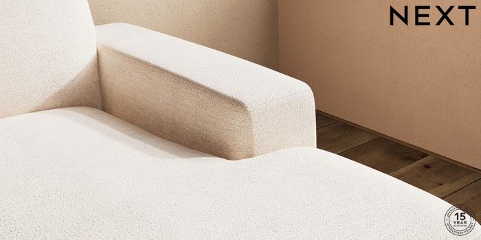 7.2.10 Houghton Deep Sit Medium Sofa Chaise - Right Hand Boucle Chenille Oyster Large Square Angle - Chrome Metal | Made Click here to use our website with more accessibility support, for example screen readers