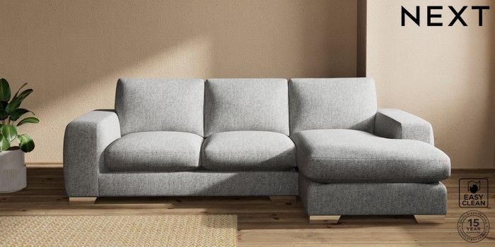 7.2.10 Houghton Deep Sit Medium Sofa Chaise - Right Hand Chunky Boucle Easy Clean Light Grey Large Square Angle - Chrome Metal | Made Click here to use our website with more accessibility support, for example screen readers