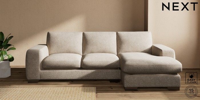 7.2.10 Houghton Deep Sit Medium Sofa Chaise - Right Hand Chunky Boucle Easy Clean Mid Natural Large Square Angle - Gunmetal | Made Click here to use our website with more accessibility support, for example screen readers