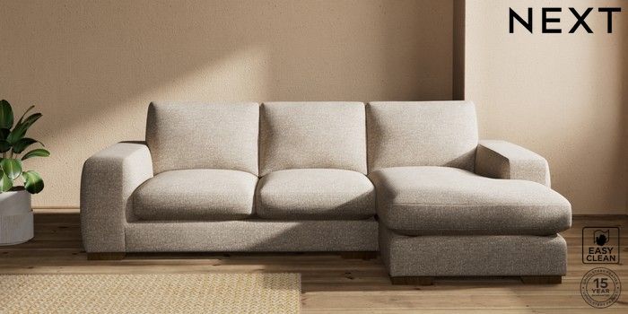 7.2.10 Houghton Deep Sit Medium Sofa Chaise - Right Hand Chunky Boucle Easy Clean Mid Natural Large Square Angle - Mid | Made Click here to use our website with more accessibility support, for example screen readers