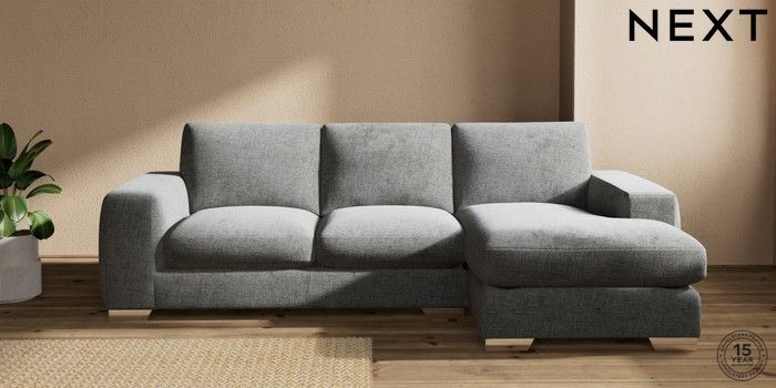 7.2.10 Houghton Deep Sit Medium Sofa Chaise - Right Hand Chunky Chenille Dark Grey Large Square Angle - Chrome Metal | Made Click here to use our website with more accessibility support, for example screen readers