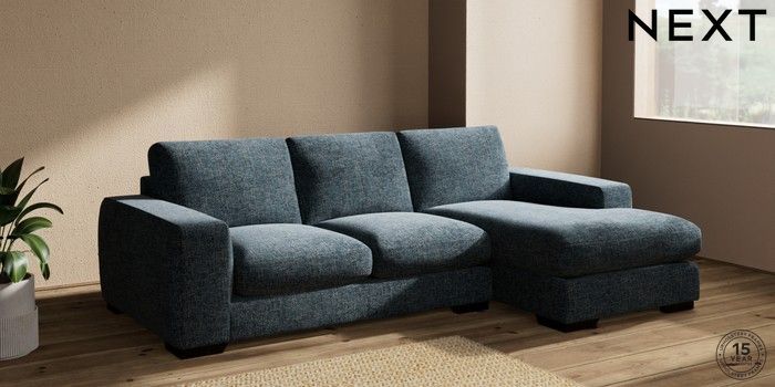 7.2.10 Houghton Deep Sit Medium Sofa Chaise - Right Hand Chunky Chenille Dark Navy Blue Large Square Angle - Dark | Made Click here to use our website with more accessibility support, for example screen readers