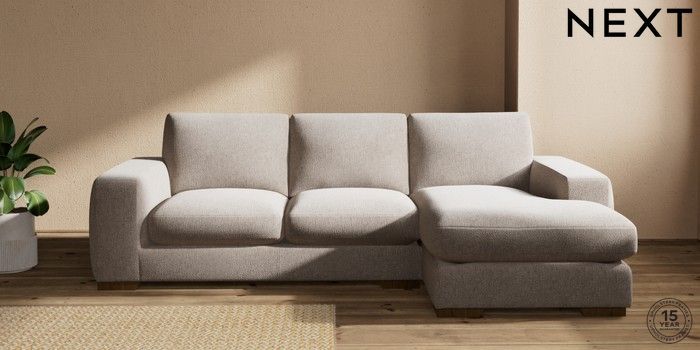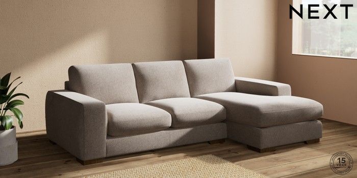 7.2.10 Houghton Deep Sit Medium Sofa Chaise - Right Hand Chunky Chenille Light Dove Large Square Angle - Mid | Made Click here to use our website with more accessibility support, for example screen readers