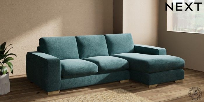 7.2.10 Houghton Deep Sit Medium Sofa Chaise - Right Hand Chunky Chenille Mid Teal Green Large Square Angle - Light | Made Click here to use our website with more accessibility support, for example screen readers
