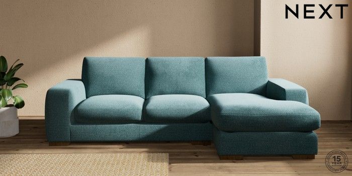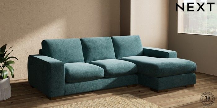 7.2.10 Houghton Deep Sit Medium Sofa Chaise - Right Hand Chunky Chenille Mid Teal Green Large Square Angle - Mid | Made Click here to use our website with more accessibility support, for example screen readers