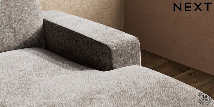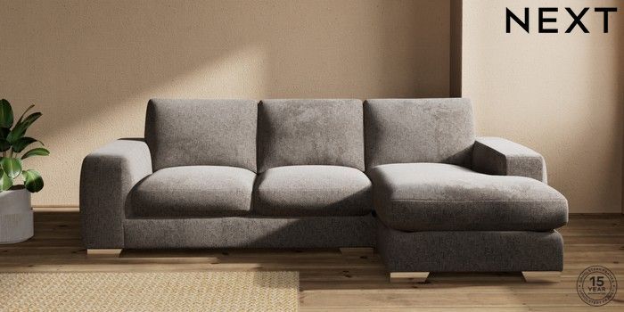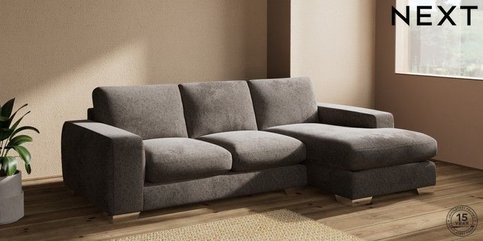 7.2.10 Houghton Deep Sit Medium Sofa Chaise - Right Hand Chunky Chenille Mink Brown Large Square Angle - Chrome Metal | Made Click here to use our website with more accessibility support, for example screen readers
